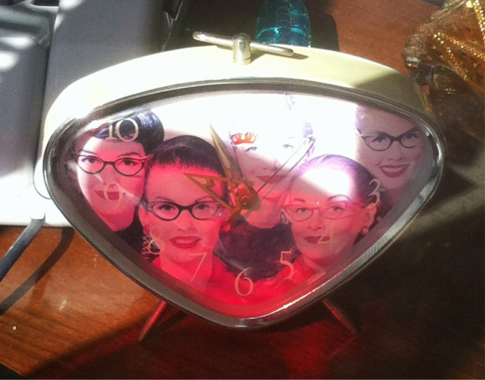 This charming segment shaped alarm clock caught my attention in a local shop window. The sun was so bright that sadly the photo is not brilliant. The shop was closed, so I plan to go back and buy it if its still there.