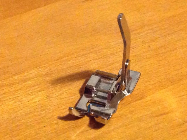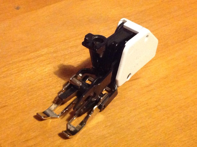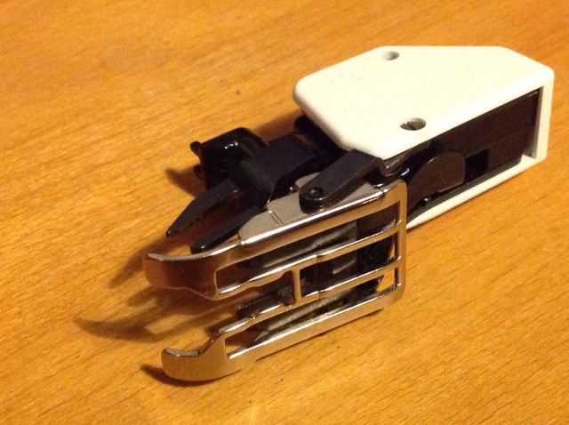 Last week I saw something called a ‘knit presser foot’, and thought it was interesting – mainly because the foot itself is smaller than the walking foot so I thought it might be easier to use in tight spaces.