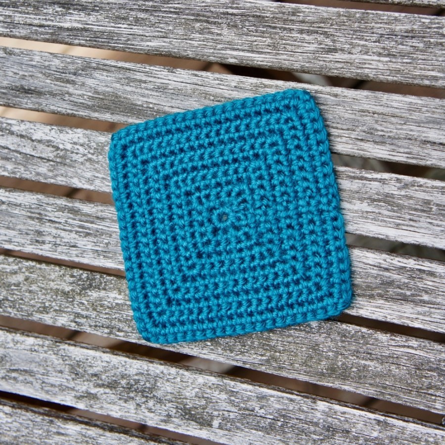 This square is made in single crochet and is worked in rows (from the inside to the outside). I’ve also made sure that it has the correct number of stitches in each row to make it a mathematically ‘ideal’ square. Because reasons. (Scroll to the end of this post for more geeky details.)