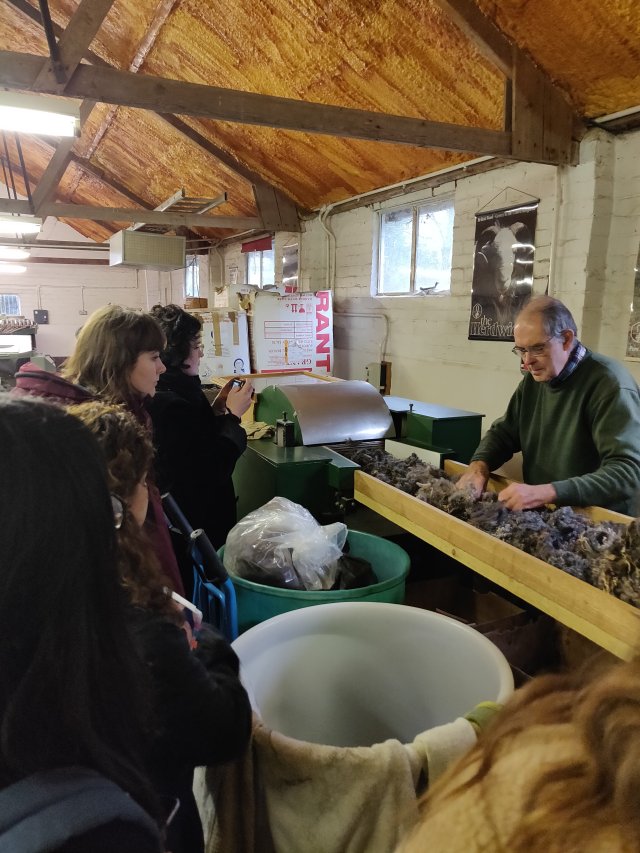Starting in the sorting shed, we were shown round by Roger, the owner, and given a really thorough introduction to the processes involved in changing raw fleece into yarn.