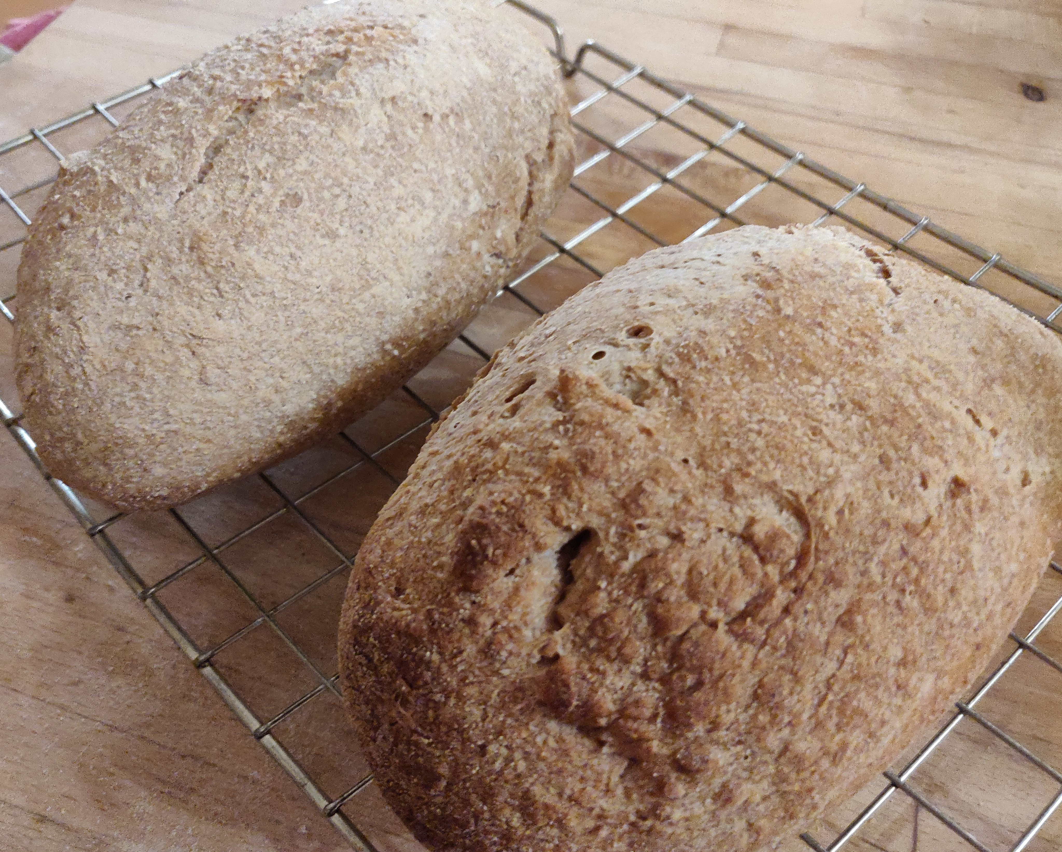 I’ve been experimenting with sourdough bread using my own yeast starter. Today I baked the fourth lot of loaves from my starter dough, and they look yummy.