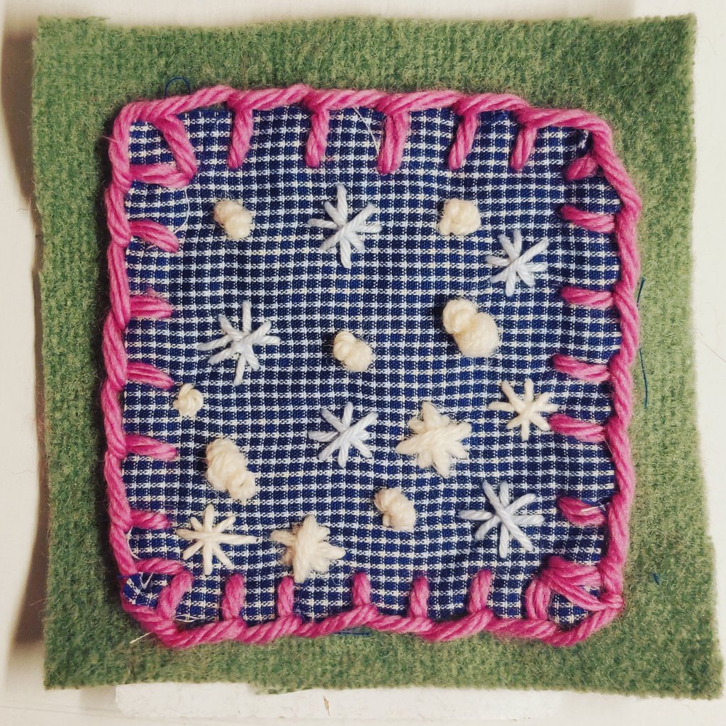 I sent of an embroidered a patch for the ‘coat of hopes’ today. The cost is being worn by many on the walk from Newhaven to Glasgow. In time for the United Nations Climate Change conference in November.