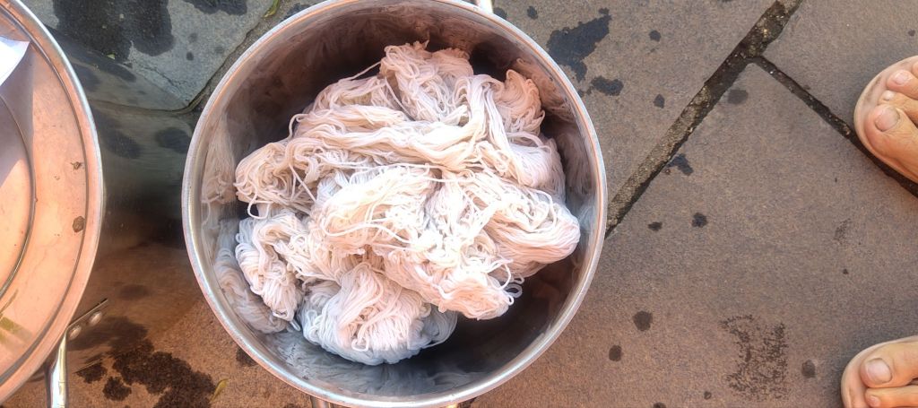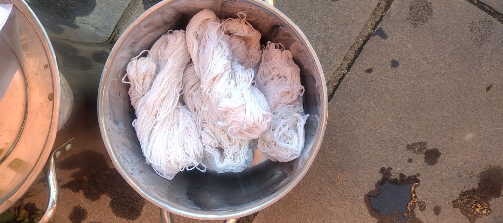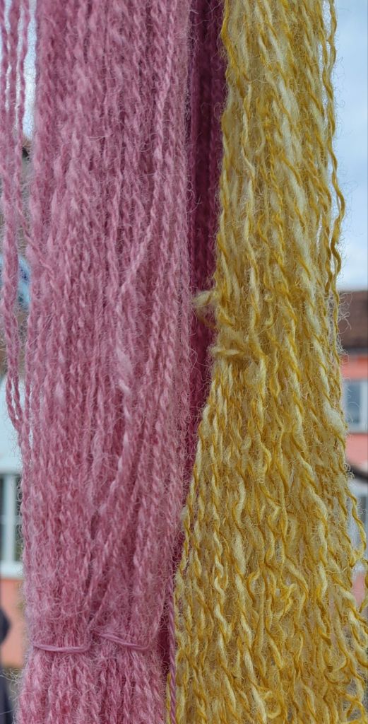 This section of the talk started by looking at extracting colour inspiration from one of the images used in the book, and then reviewing a sample from the book that had been designed using these colours to work stripes. The practical part of the talk was about selecting yarns, designing another stripe, and revising and developing the design. Each step was shown and design rationales discussed. The sample was knitted and a finished and steamed version was reviewed to which the group gave feedback on how it might be improved/adapted. All in all it was an enjoyable experience.
