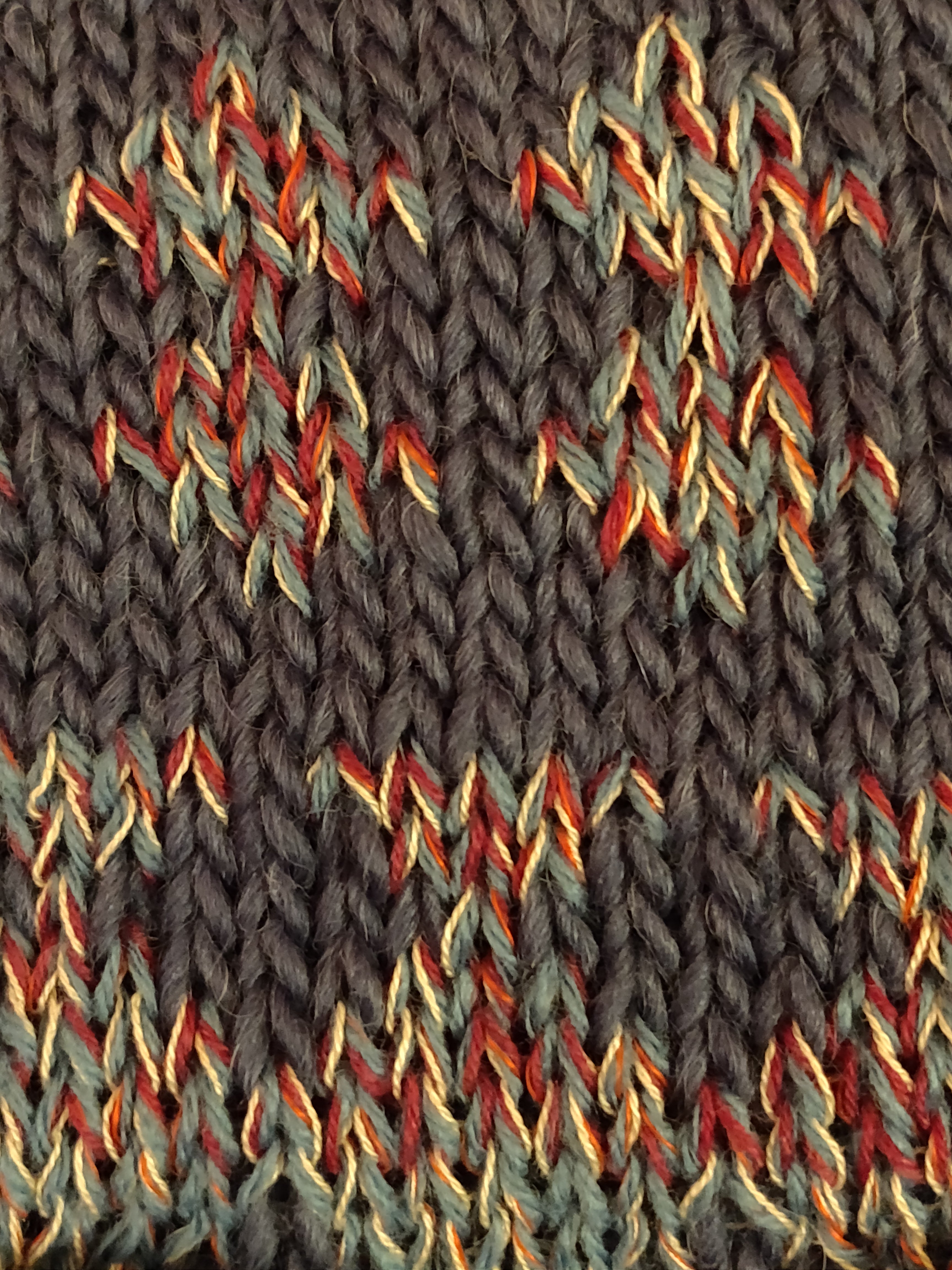 Before putting the case back on I tested the patterning by knitting a piece, which worked up no problem. I felt wonderful – its such a kick mending something.
