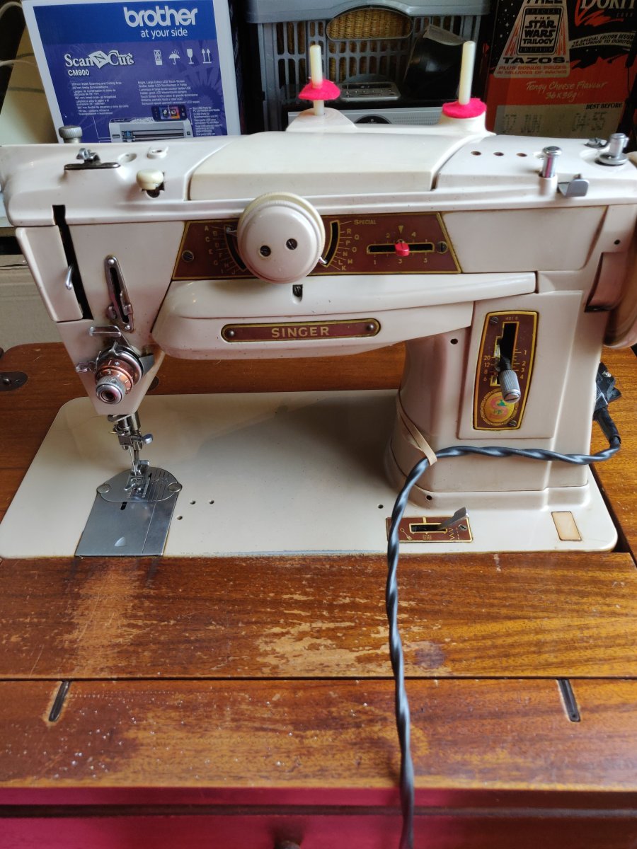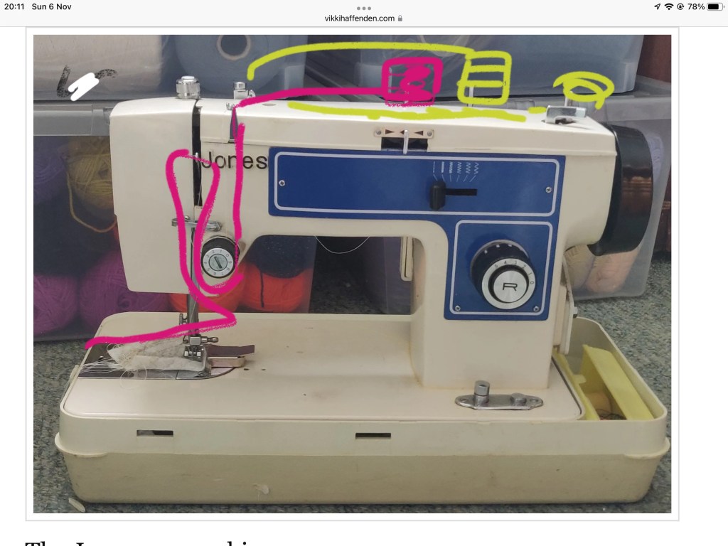 Andy suggested that the bobbin case might be worn, and that also might be contributing to the thread dropping underneath. So I have ordered a new one. After all, it is probably 50 years old, ( this machine was made in the late 1950 early 60s. Maybe it’s had a new bobbin case in that time, but maybe it hasn’t!