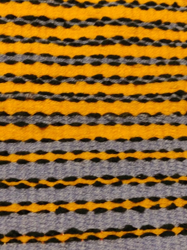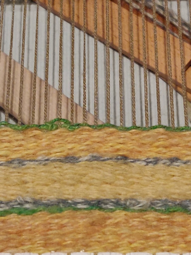 And so my weaving adventure has begun. Kindly she put a viscose thread warp on it for me to get me going and I’ve used this to practise using some acrylic DK yarn I had to hand.
