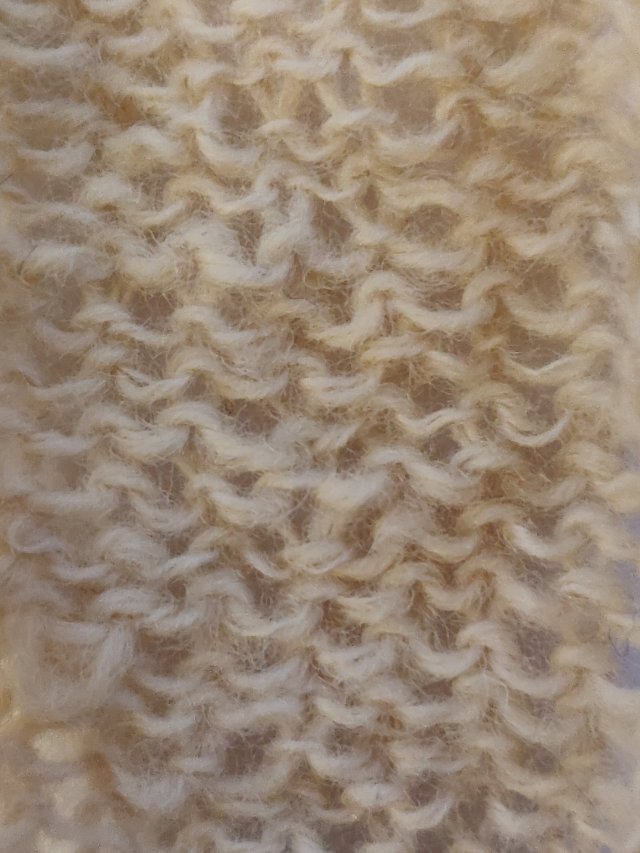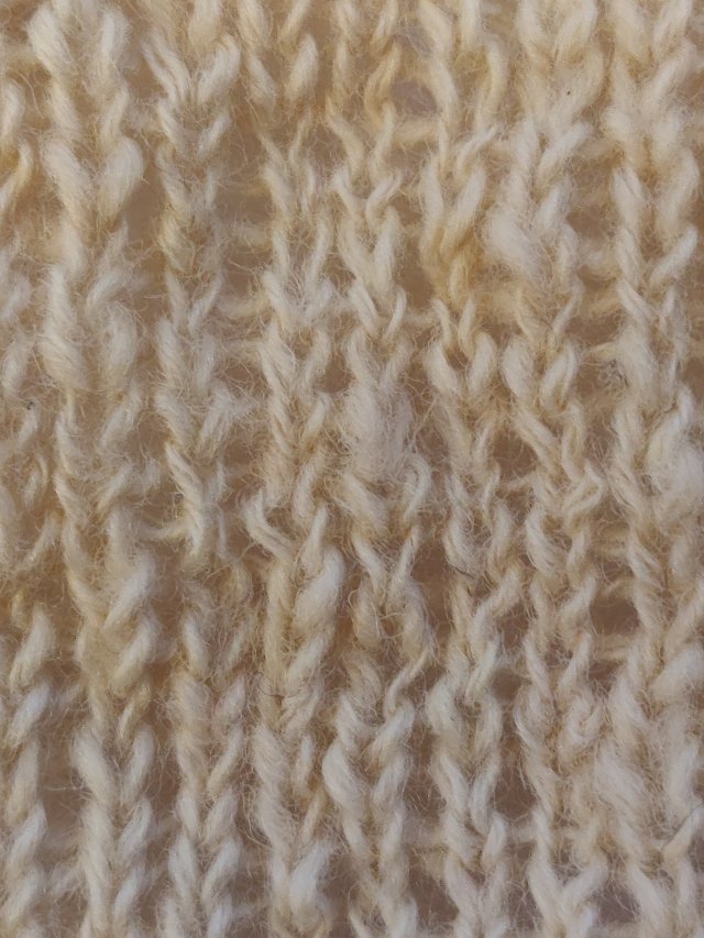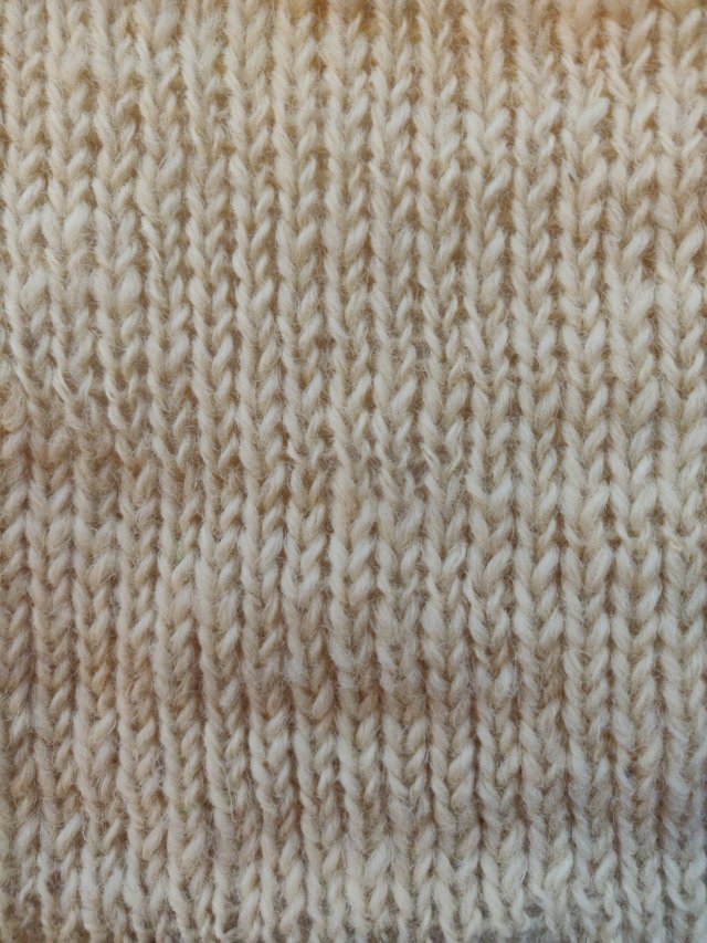 Ok. Here is the yarn knitted at tension 10 on a Knitmaster HK160 mid-gauge knitting machine.