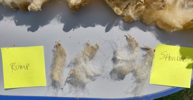 Staples taken from the fleece to aid identification of softer and coarser areas
