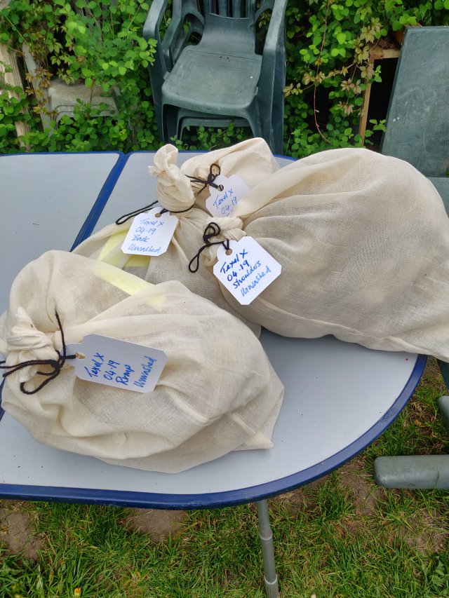 Labelled sacks of sorted fleece – phew glad that’s over. The flies loved it!
