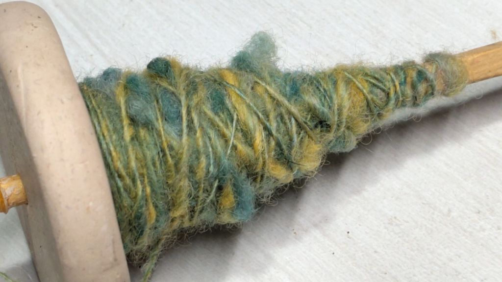 The fibre has about four crimps to the inch, so that’s my starting tpi for sampling. Otherwise, suggestions on a postcard please…