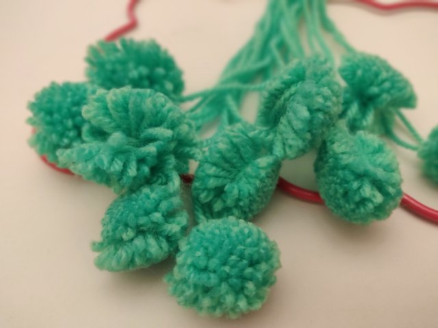 Tying the wrapping threads was challenging. Another pair of hands to hold the knots tight would have been helpful. The advice to use a strong thread is very sensible as you have to tug hard to make a nice ‘waist’ on each pom-pom before cutting.