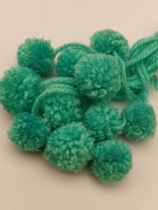 Anyway I decide to get ahead and cut them anyway. Cutting the end ones was awkward,so that pom-pom was more ragged than the others immediately after cutting.