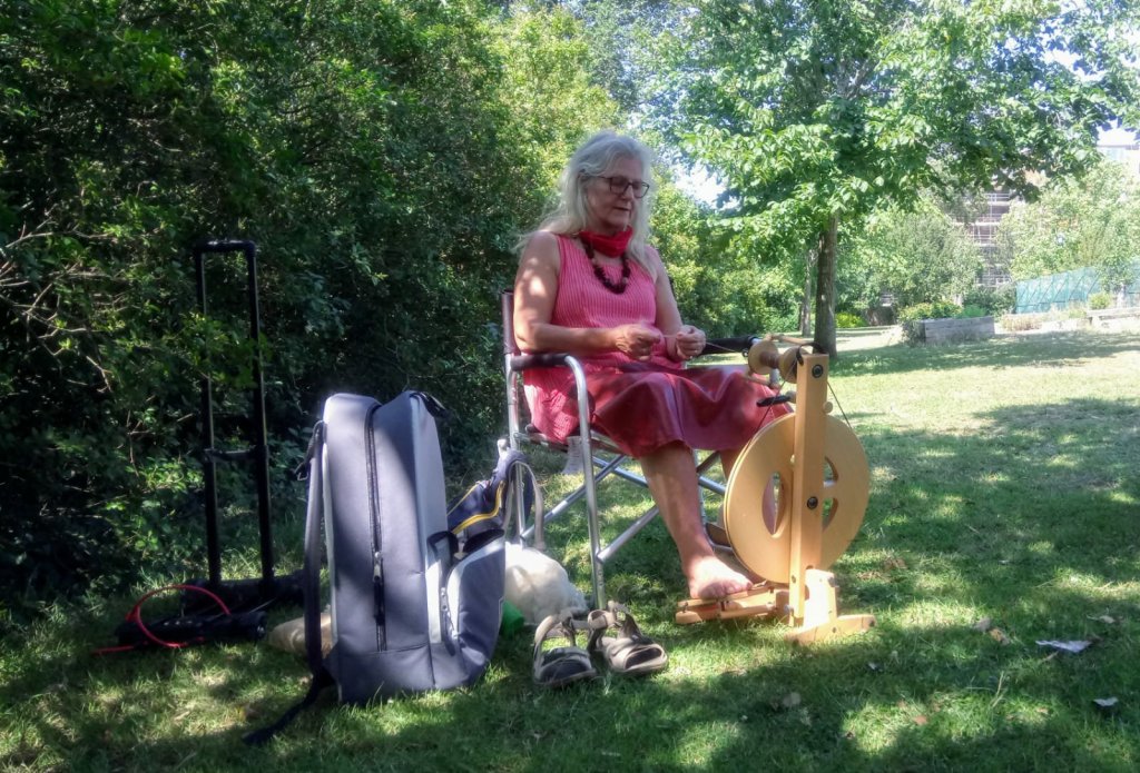 This is the second one I’ve organised and it was lovely way to spend a Friday afternoon. I took my portable Louet wheel and others brought wheels, drop spindles, knitting and crochet. And a picnic lunch!