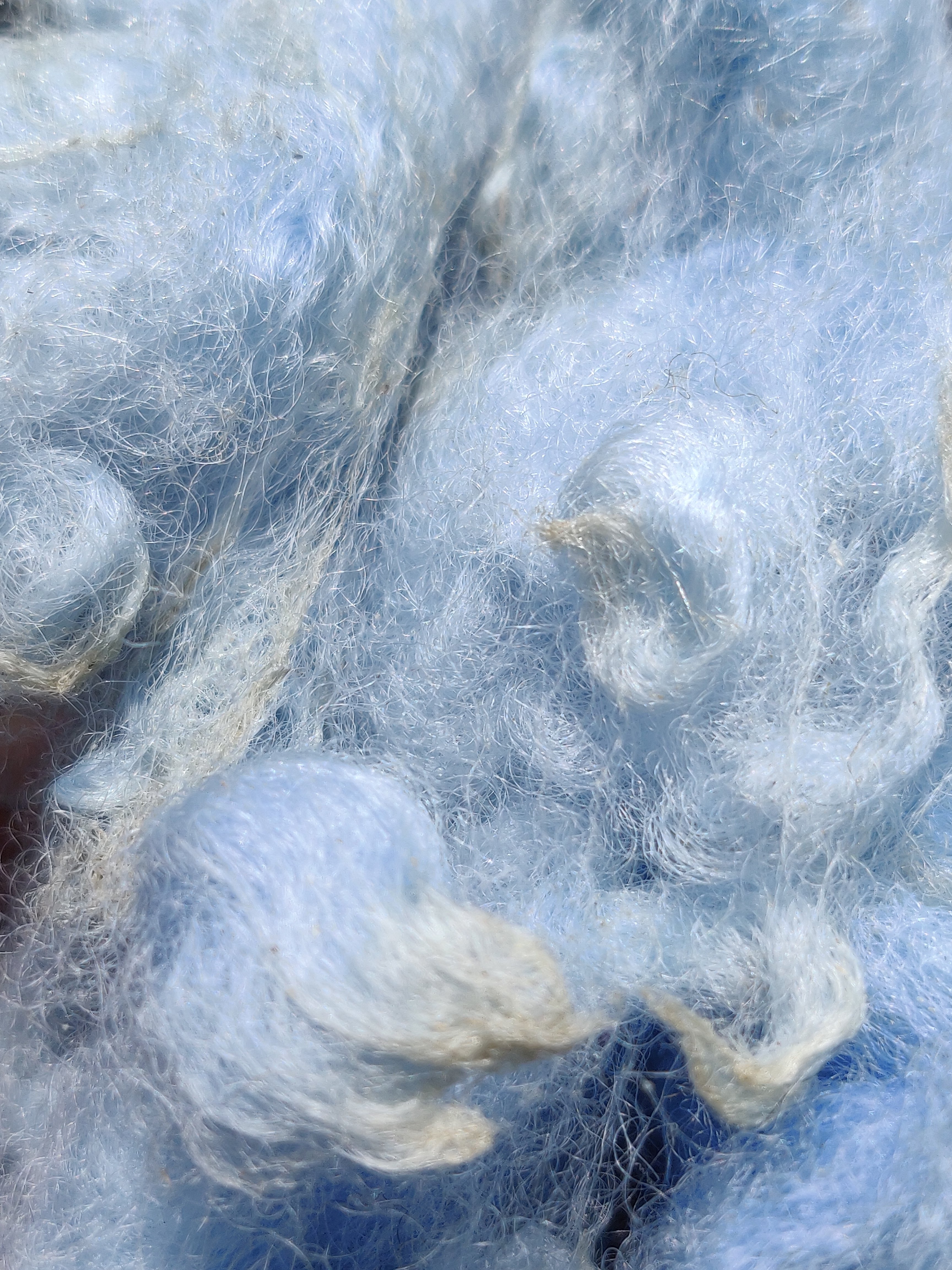 I was surprised that the hand spun did not take much colour whereas the wool and nylon took loads. Both had had same pretreatment.