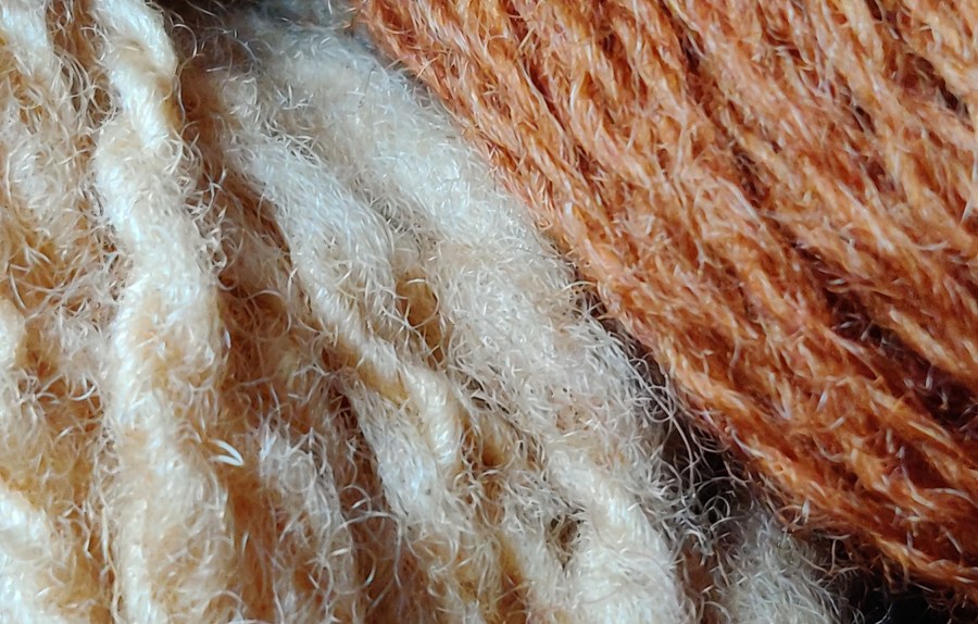 I’ve used the silk/wool as a band for a hat and the over dyed marl as the crown.