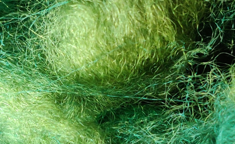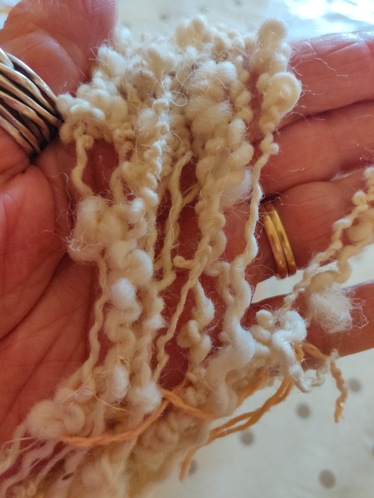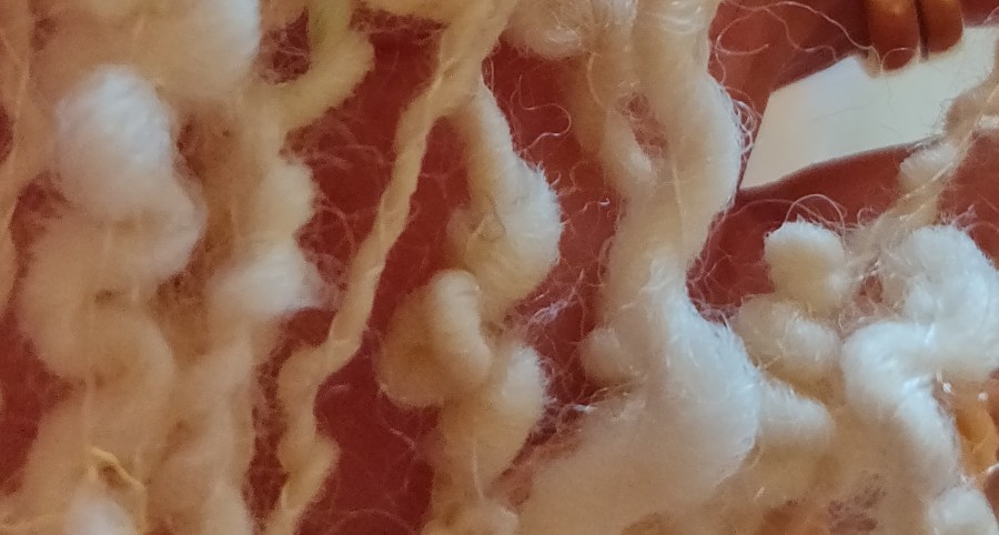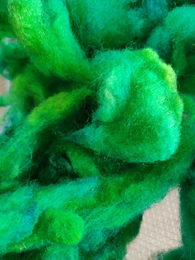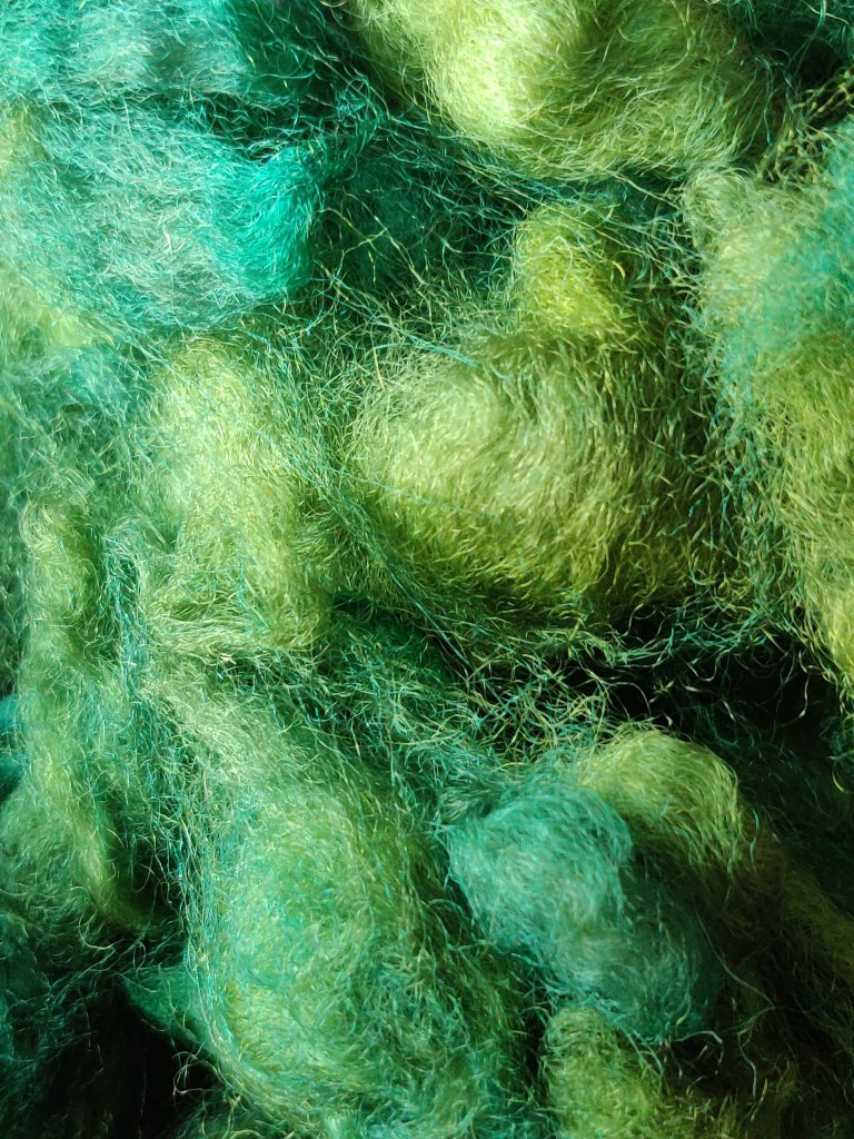 I tested this first on hand carders and it produced a very nice yarn so now I’ve done it in bulk and taken rolags of a batt from the drumcard.