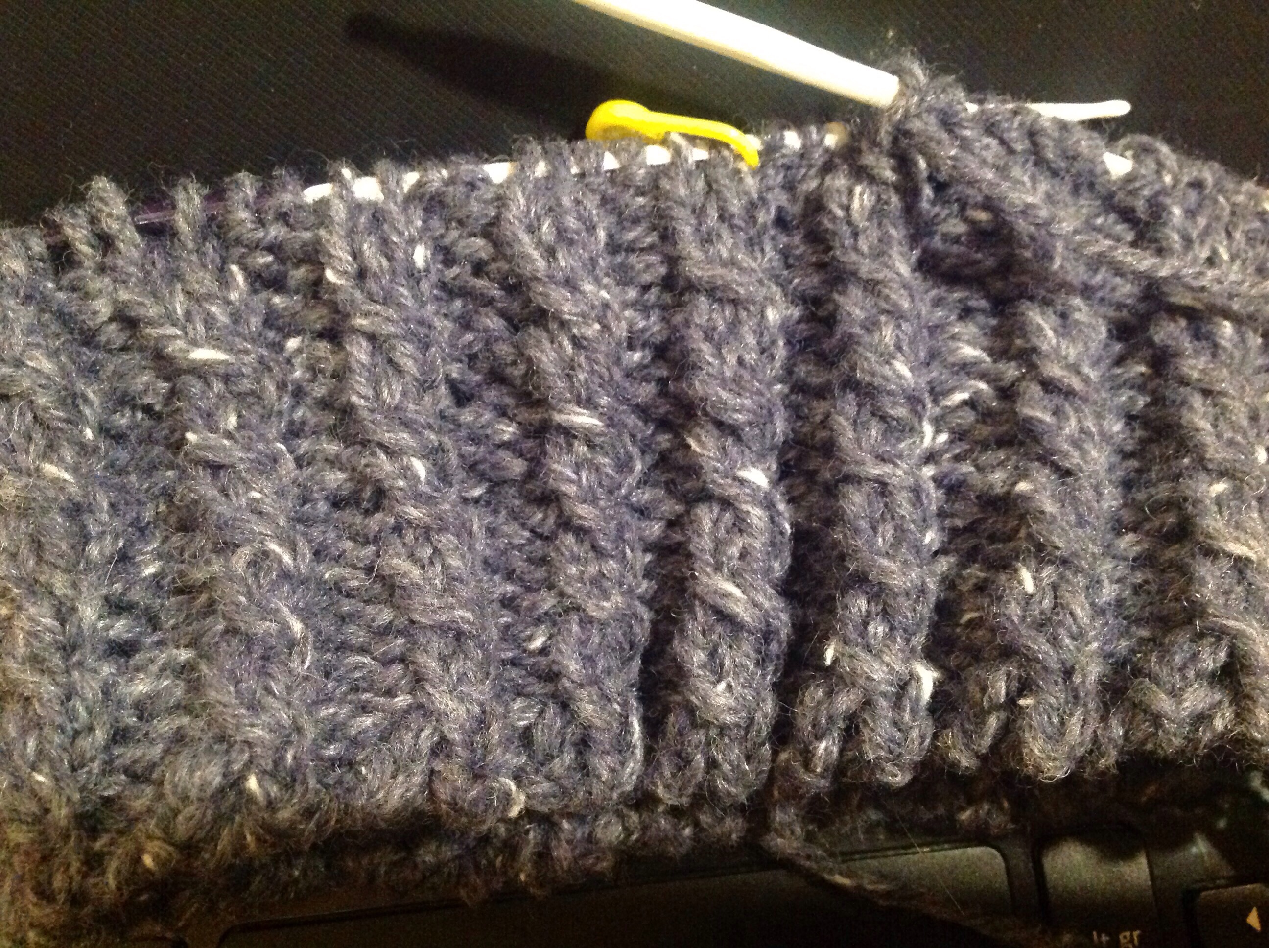 I’ve started a beanie hat as a Christmas gift. Its in yarn from my stash, a rather nice airforce blue tweed 90% wool 10% acrylic blend Aran weight yarn. I dithered about the acrylic content I have to say, as I believe one’s toil is best rewarded by natural fibres, but the the colour (and having the yarn to hand), won the day.