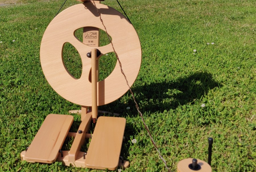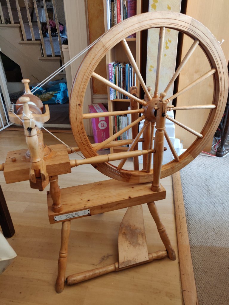 I learned to spin on a Westbury wheel, which was a gem of a wheel. My Mother bought it in Glastonbury as a kit – she was so excited, and my Dad built it for her and stained it dark walnut – not a fashionable option today, but it did look charming. The Westbury has both double drive and Scotch tensions, but I only used the Scotch option as we really didn’t understand the double drive. After this there was a gap in my spinning and Mum didn’t carry on with it for long, so that wheel has long gone, (something I really regret).