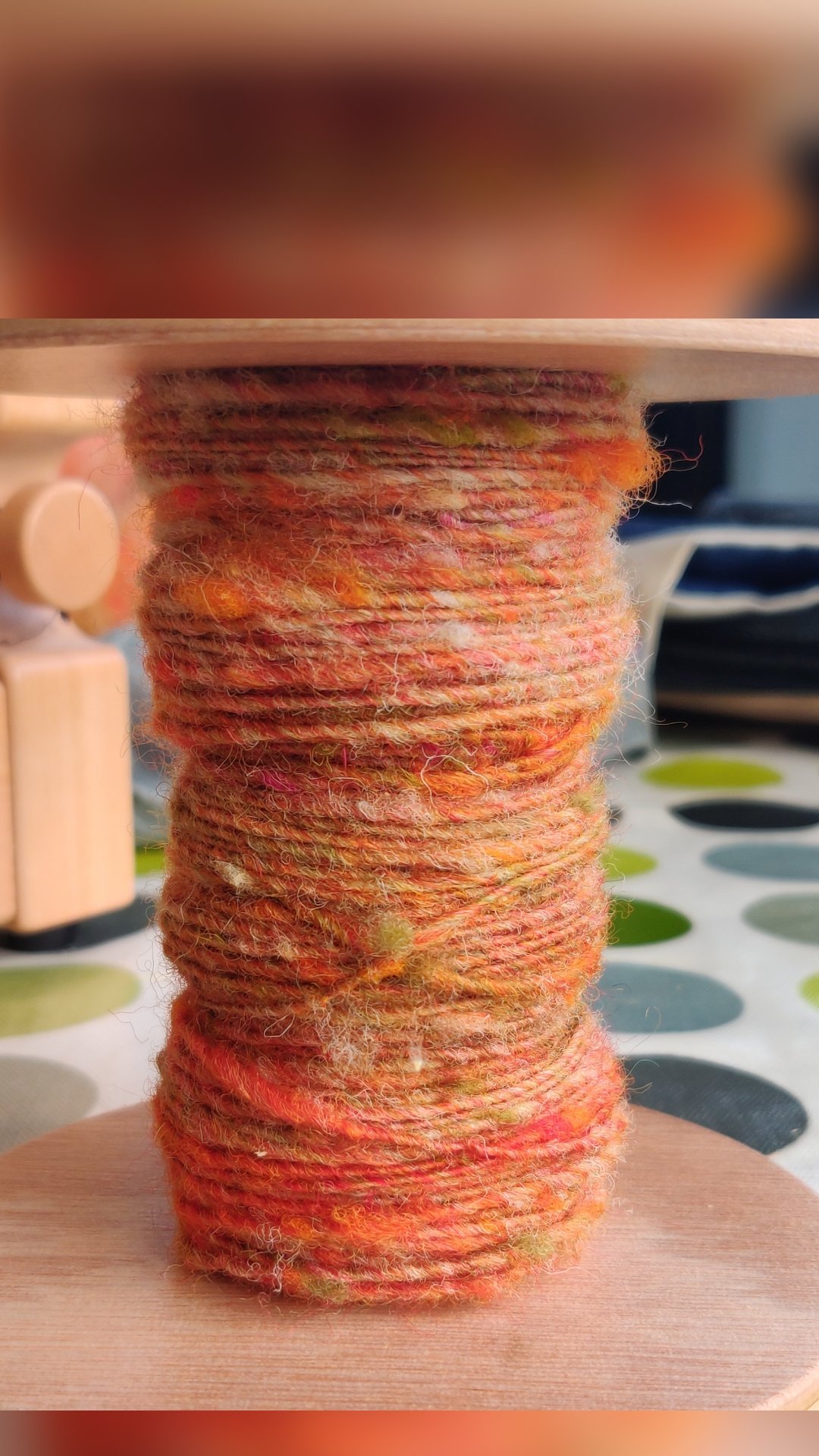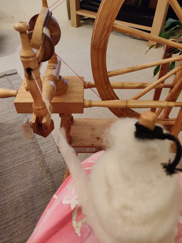 I will carry on with this and see how it works out. I may even get to attach the distaff to one of the wheel uprights which might be even more efficient.