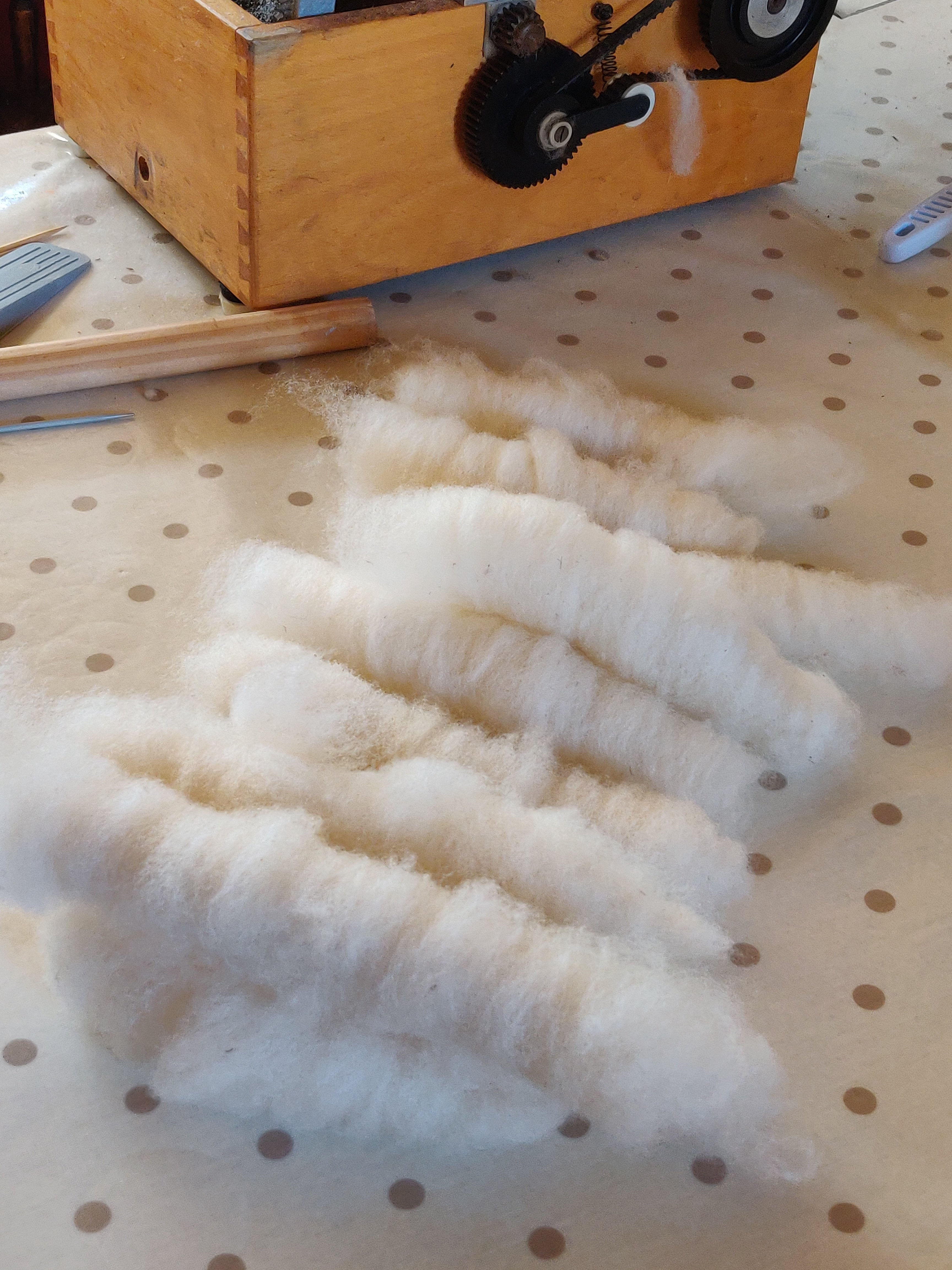 1. First of all split the roving/batt into the required lengths, (I just used the whole length of the batt of my drum carder).