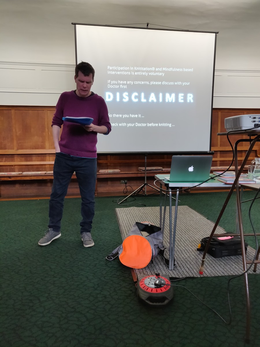 James was first to speak, and he described his personal journey through depression and how knitting mindfully enabled his recovery and brought colour back into his life. Thomas discussed the science behind mindfulness and it’s aptness to knitting.