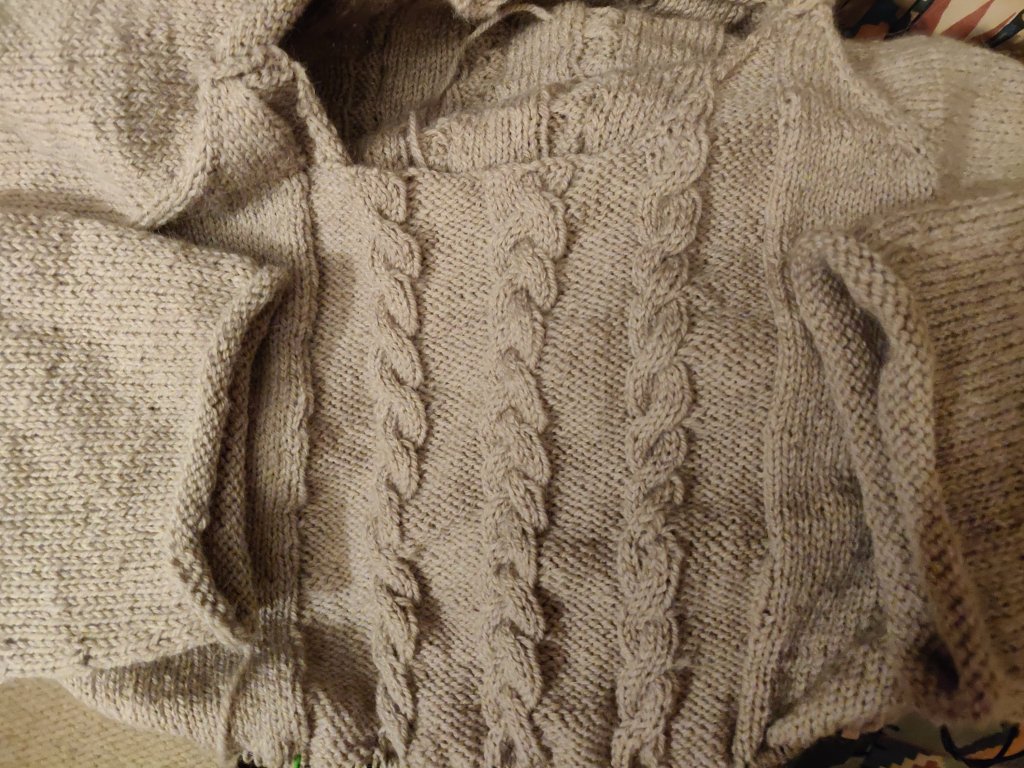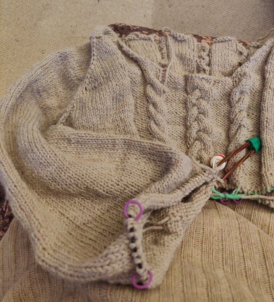 If I get the next sleeve done I might even got to finish the cable front and back before 2025!
