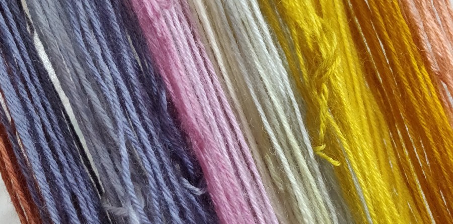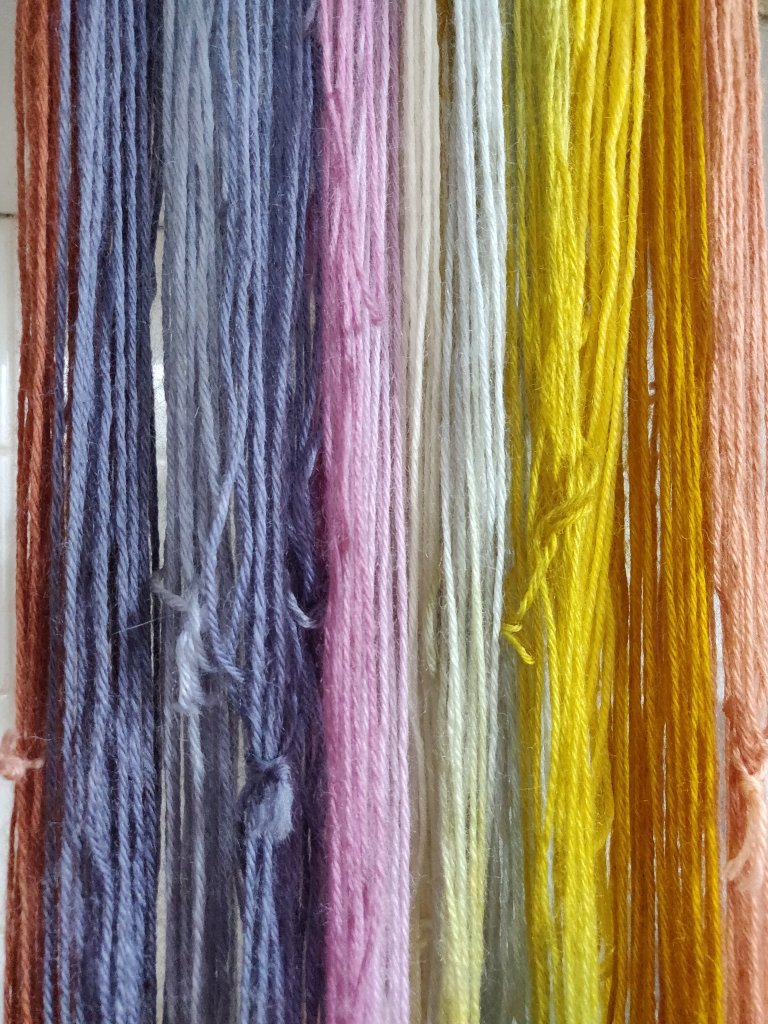 The yarn changed colour during the mordanting, and the cream ply has taken on a pale golden yellow tone. I think I will dip dye it to preserve this rather pleasant effect. Let’s hope the pale yellow doesn’t wash out at the end!