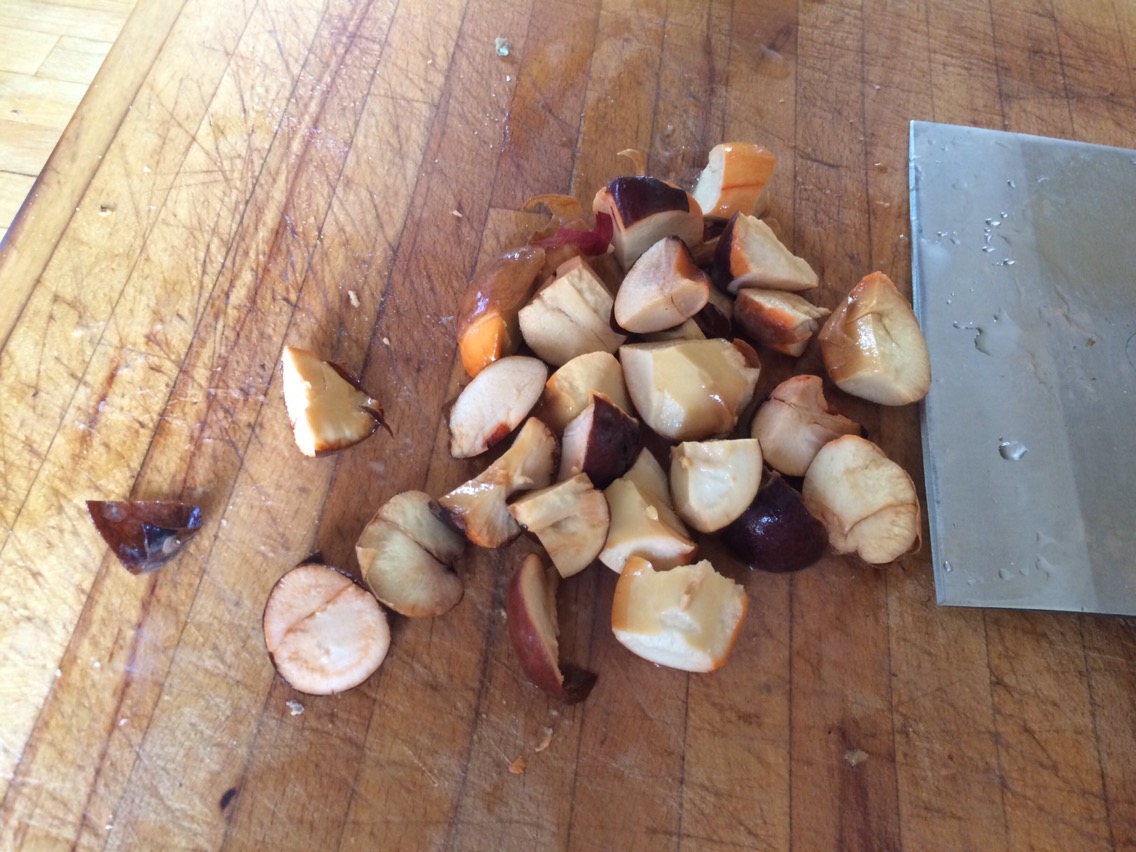 I’m also chopping avocado pits and skins to make two dye baths – one redder, one orangey. They will sit and develop over the next week or so. I will stop them going mouldy by re-boiling every couple of days.