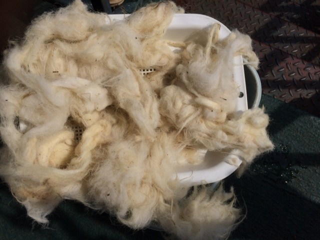 This morning I have spent a happy hour picking and scouring some fleece I harvested off bushes whilst walking beautiful around beautiful Cwm Pennant in Snowdonia. What a delightful experience that was this summer.