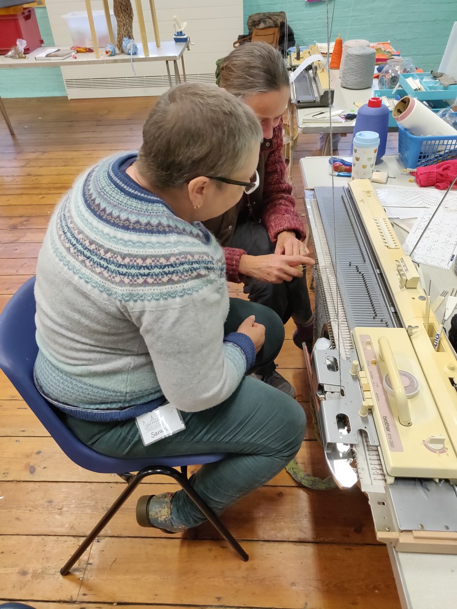 Of course machine knitters, well knitters in general, will know that ‘sorting out a sample’ is a shorthand for: