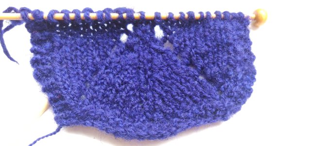 I don’t think repeatedly putting it down and restarting helped me get an even twist, or it may have been the plying, or a mixture of both, but the yarn isn’t balanced. I knitted a lace pattern with it, and the bias isn’t so pronounced as in stocking stitch, but I can see it.