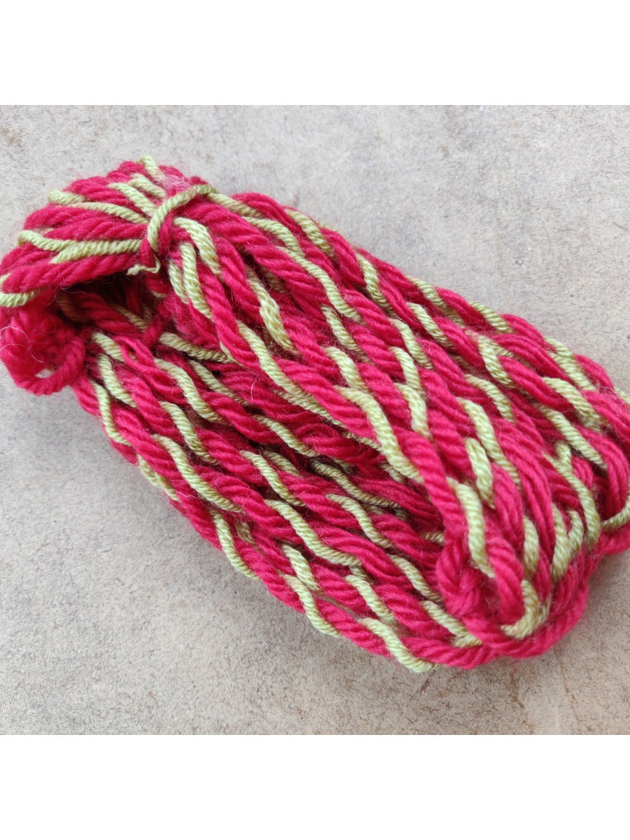As you will see in the photos, the singles I spun are nothing to write home about, but its early days for the Irish tension set-up. The fibre is onion-skin dyed Lleyn blended, (rather poorly because I was in a hurry) with rust coloured Alpaca, then taken as tops off the drum-carder.