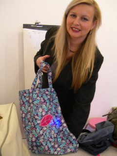 | A ‘Smart’, weight sensitive shopping bag designed by the author. These were made by visitors in the workshop organised by the author during Brighton Science Festival 2010. |
