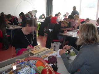 The students were invited to organise a drop in one-day workshop to share their hand knitting skills with museum visitors. Hence I facilitated the day, but the students ran the workshop. It was a lovely day, and although raining outside the room shone with colour and was warmed by the chatter.